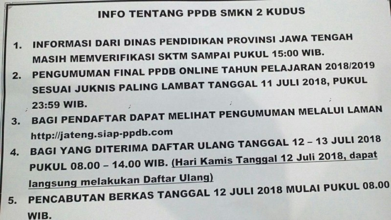 1. Informasi dari Dinas Pendidikan Provinsi Jawa Tengah masih memverifikasi SKTM sampai pukul 15.00 WIB.